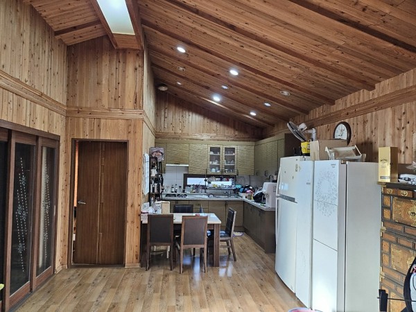 : 31평, 방3+화장실2, 내부 편백나무 마감, 기름보일러+화목난로 설치함.