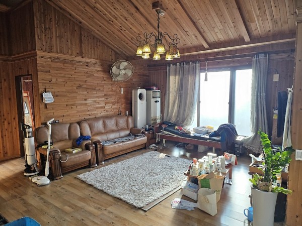 : 31평, 방3+화장실2, 내부 편백나무 마감, 기름보일러+화목난로 설치함.