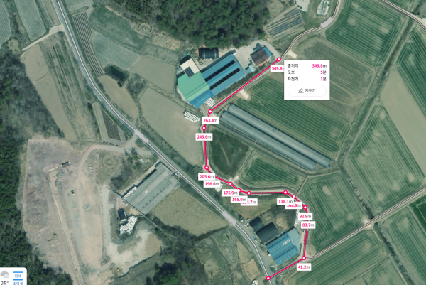1. 축사위치(2차선 도로와 거리 및 진입로 너비)