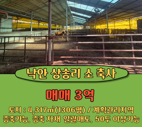 | 건축년도 | : 2004년도 | 면적 | : 토지 1306평, 축사 121평 |